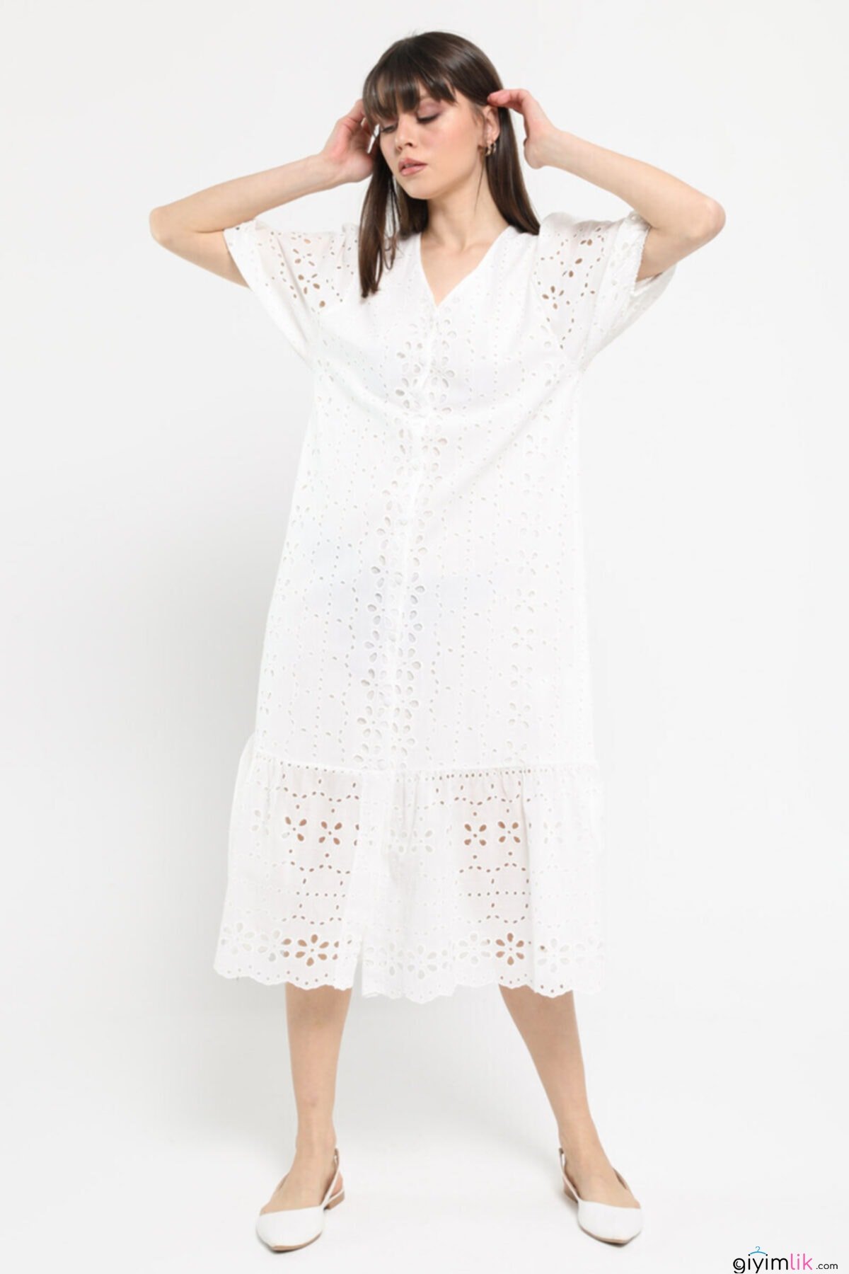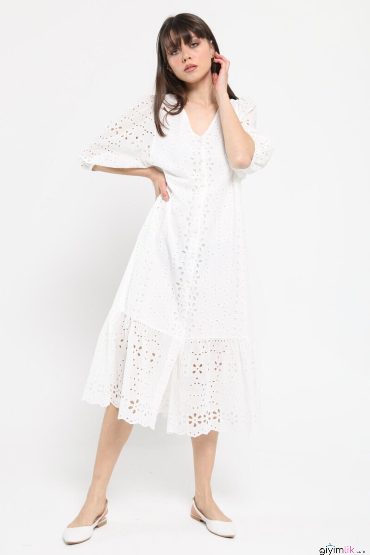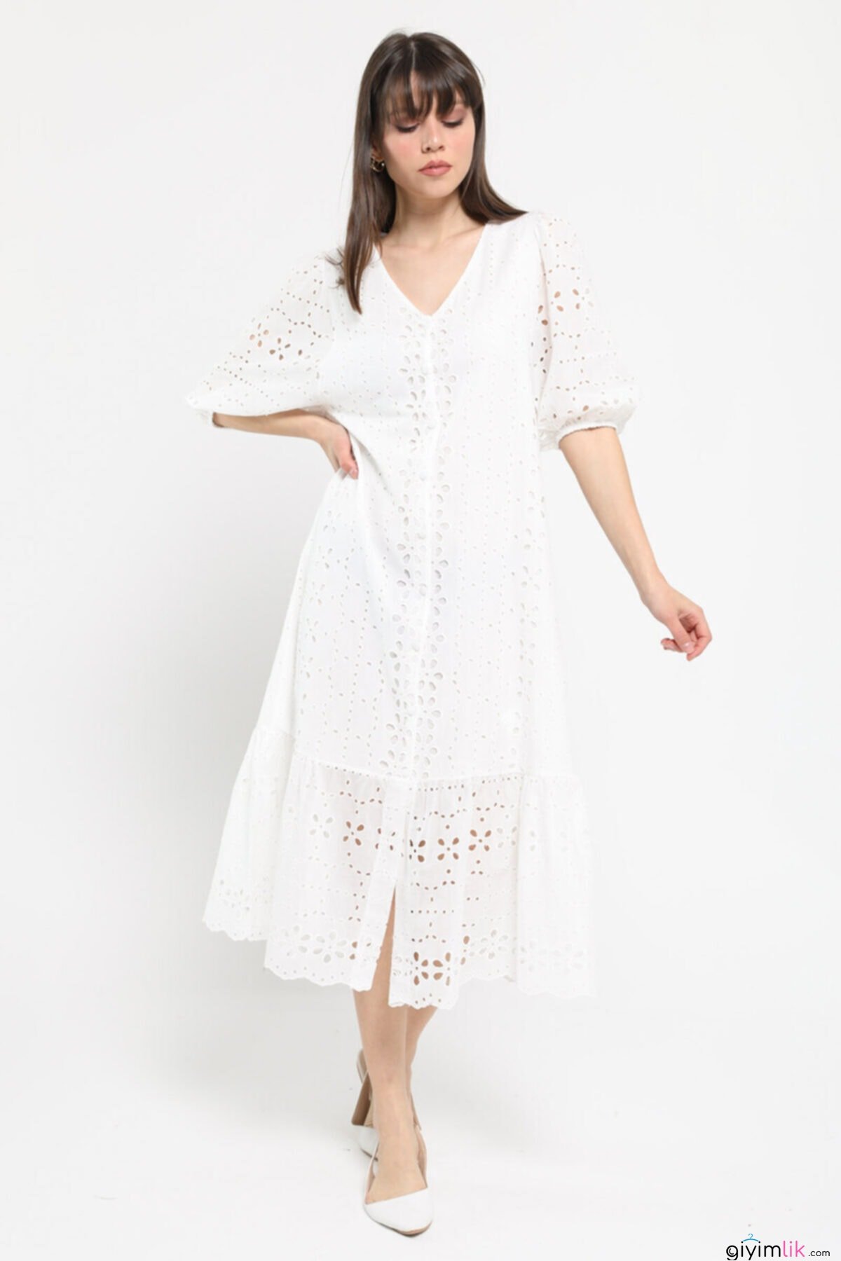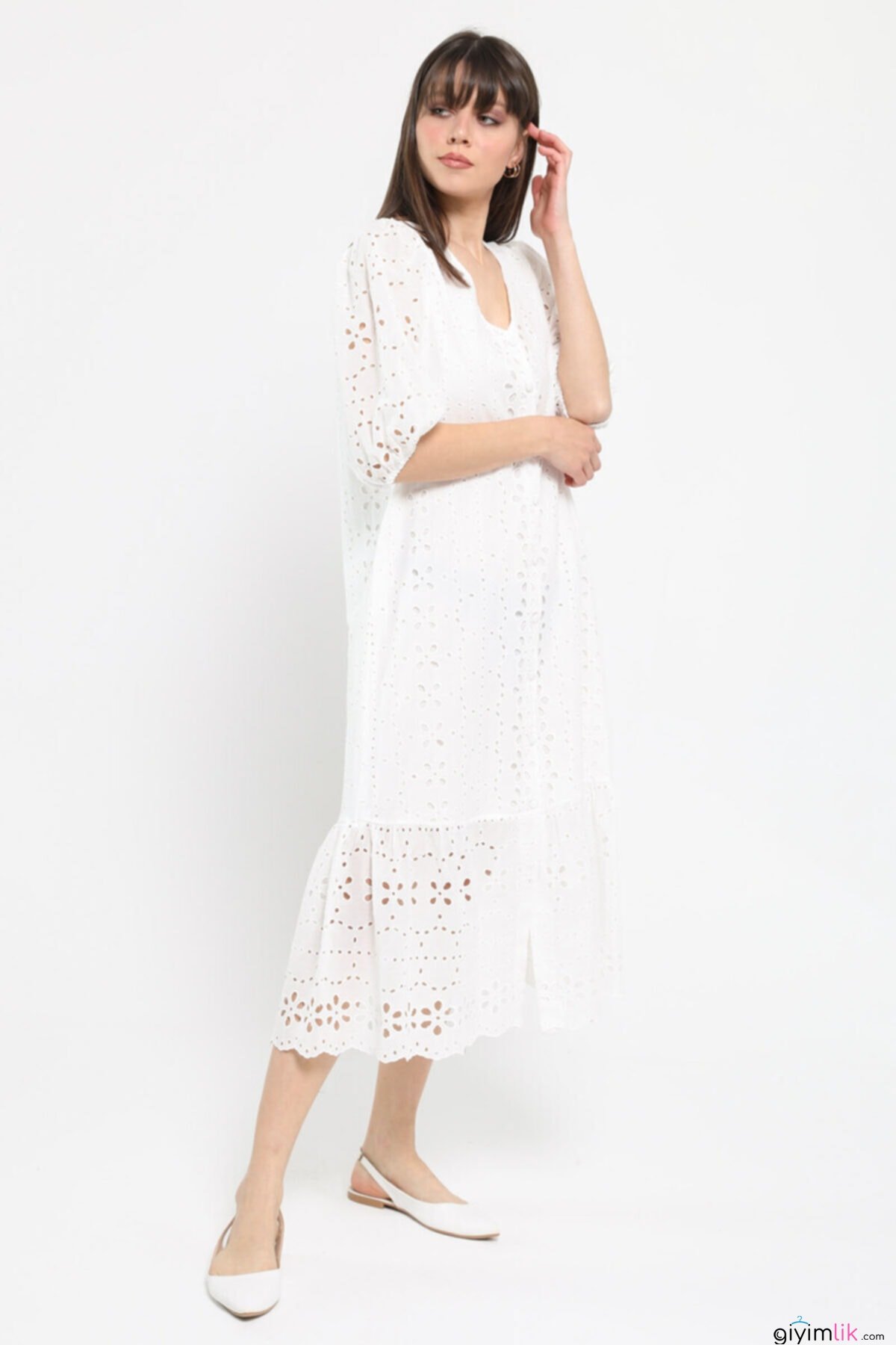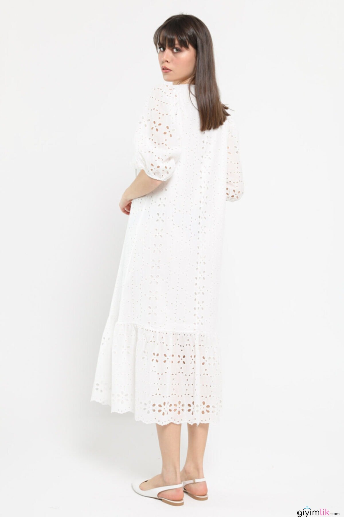 Bu elbisenin içinde kendinizi melek gibi hissedeceksiniz! Balon kol detayları ile zarifliğinize zariflik katacak.