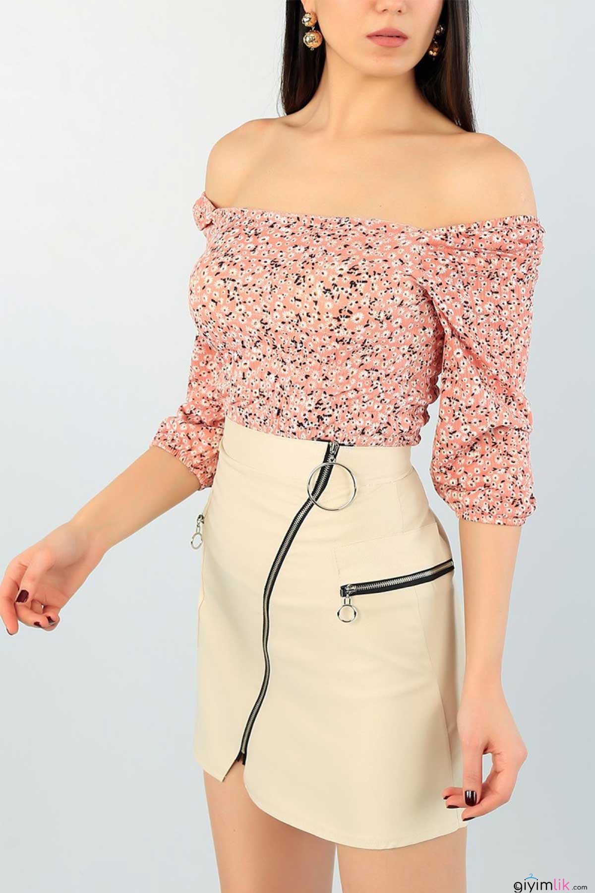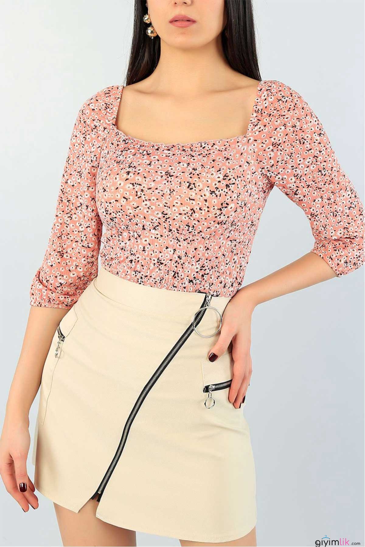 Beli Gipeli Çiçekli Pudra Bluz