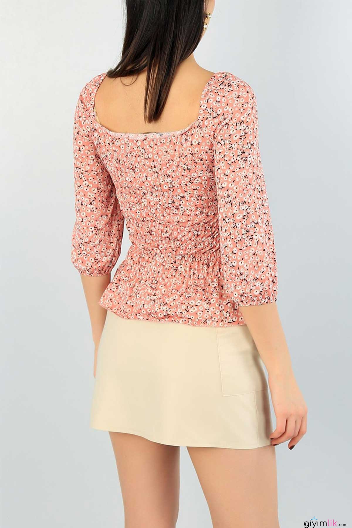 Baharın renklerini üzerinde taşımak isteyenlerin beklediği çıtı pıtı çiçekli,bel büzgülü pudra pembe bluz.