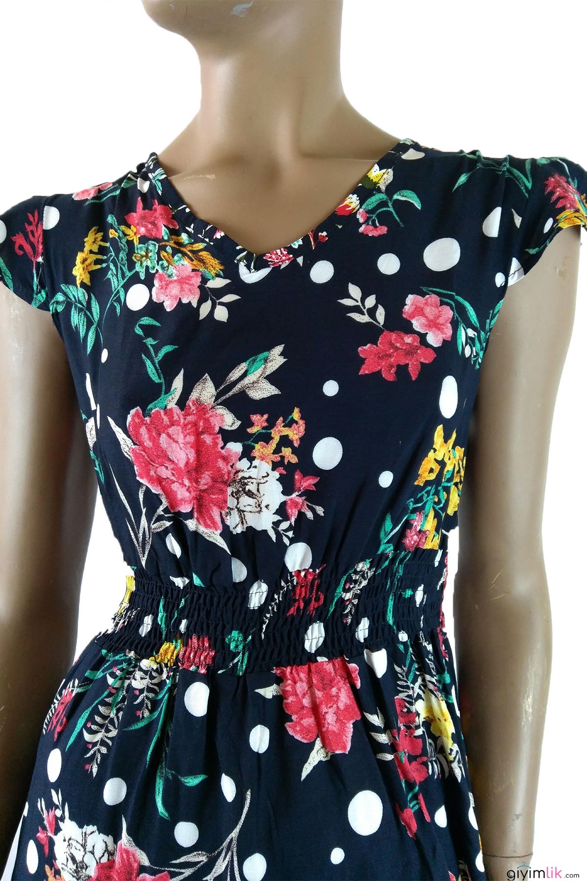 Beli Gipeli V Yaka Çiçekli Elbise
