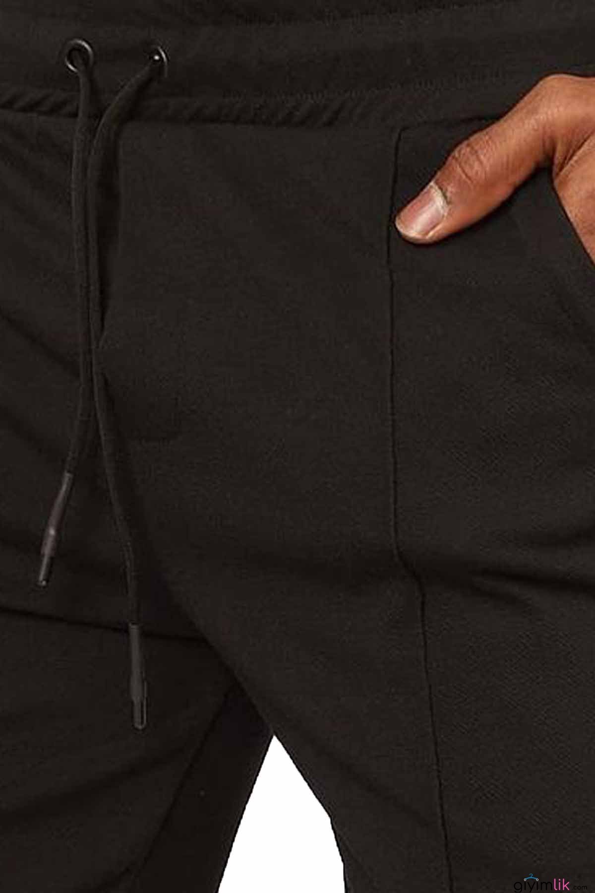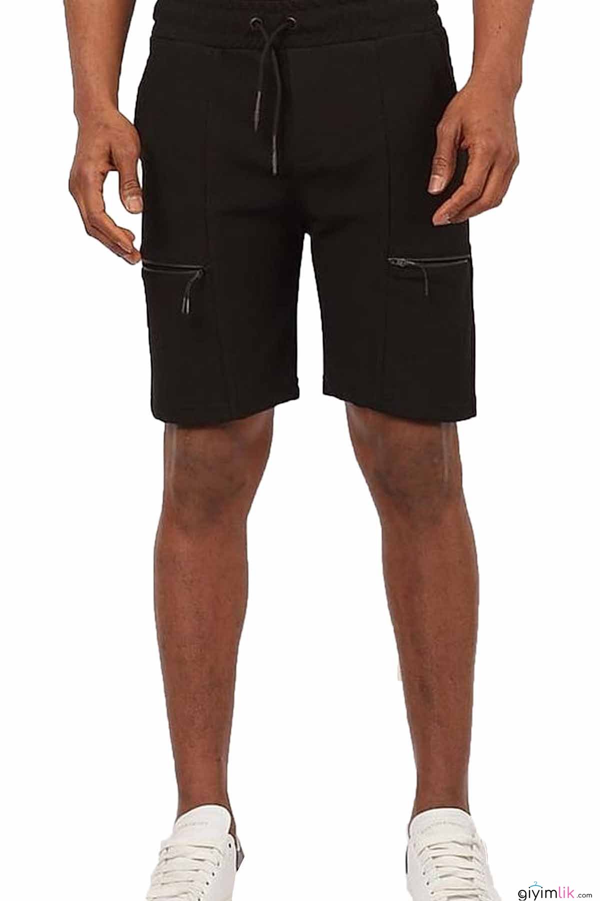 Dizden Fermuarlı Cepli Spor Şort (Siyah)