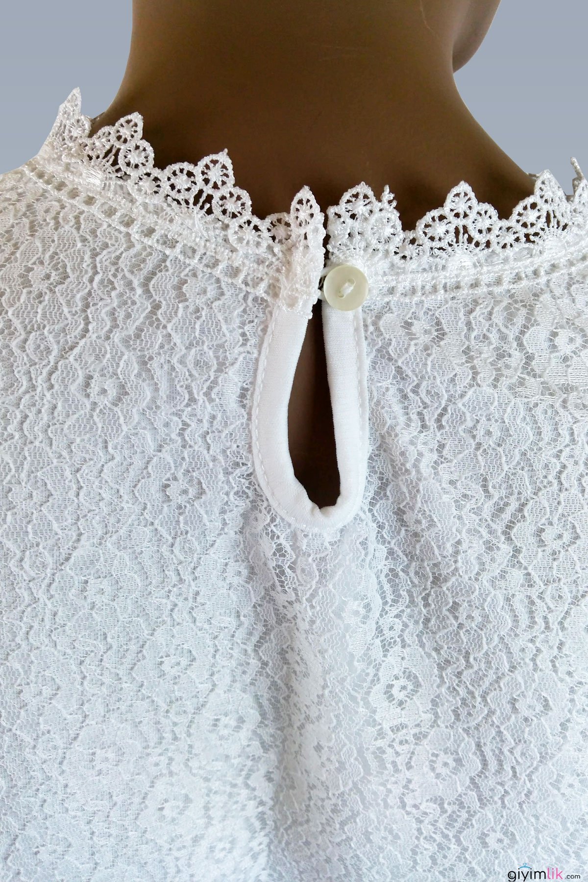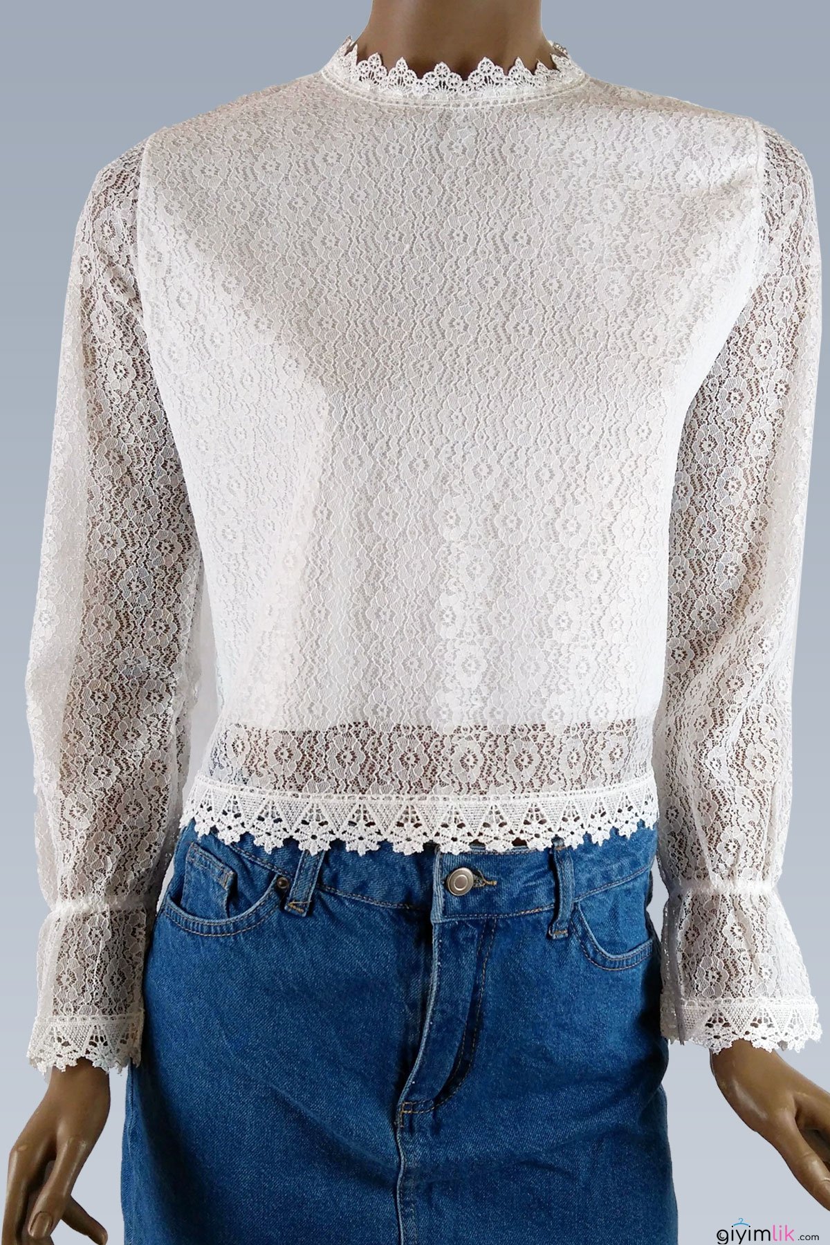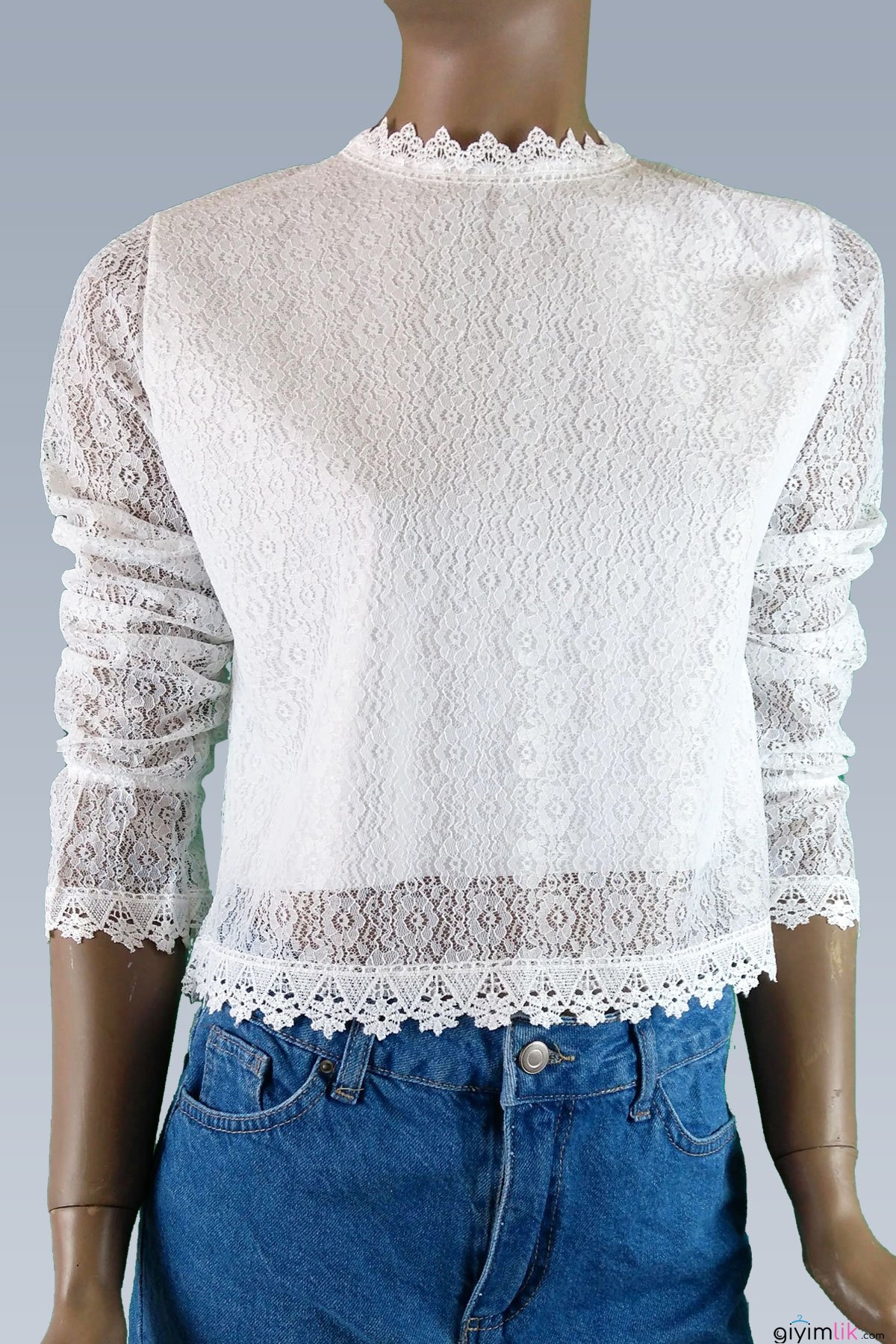 Dantel işlemeli, kolları hariç astarlı, astar beli kısa bluz. Bu bluz size çok yakışacak!