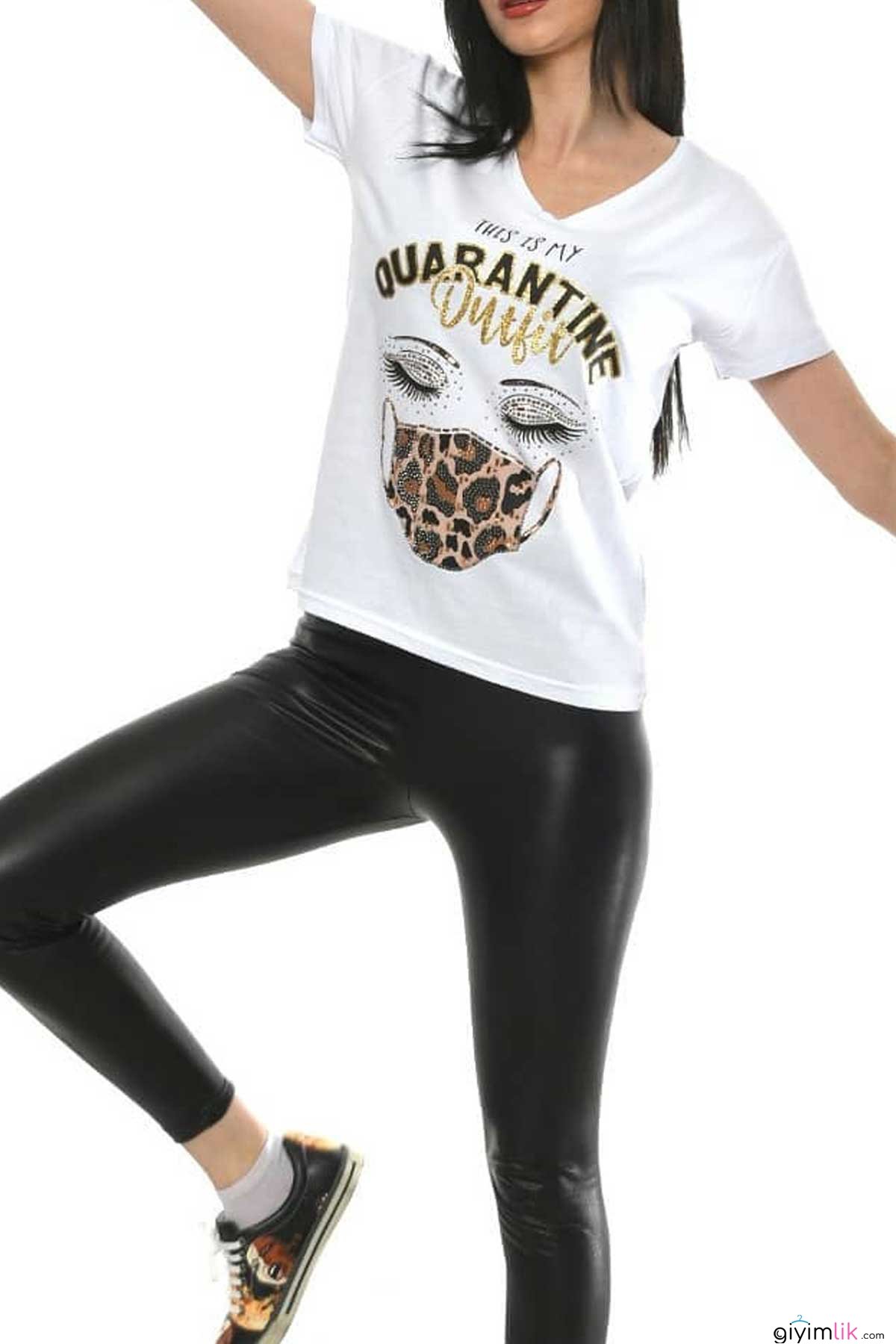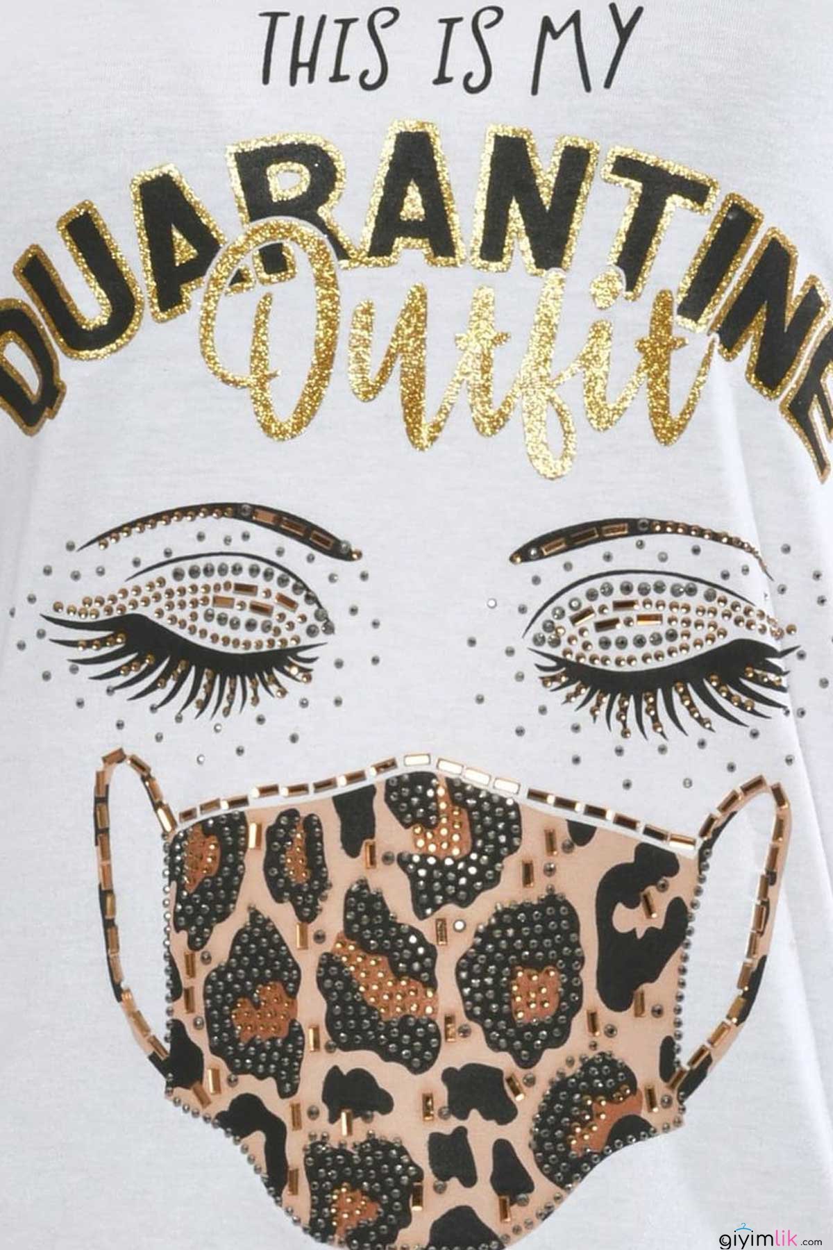 Maske Karantina Baskılı Beyaz Tişört