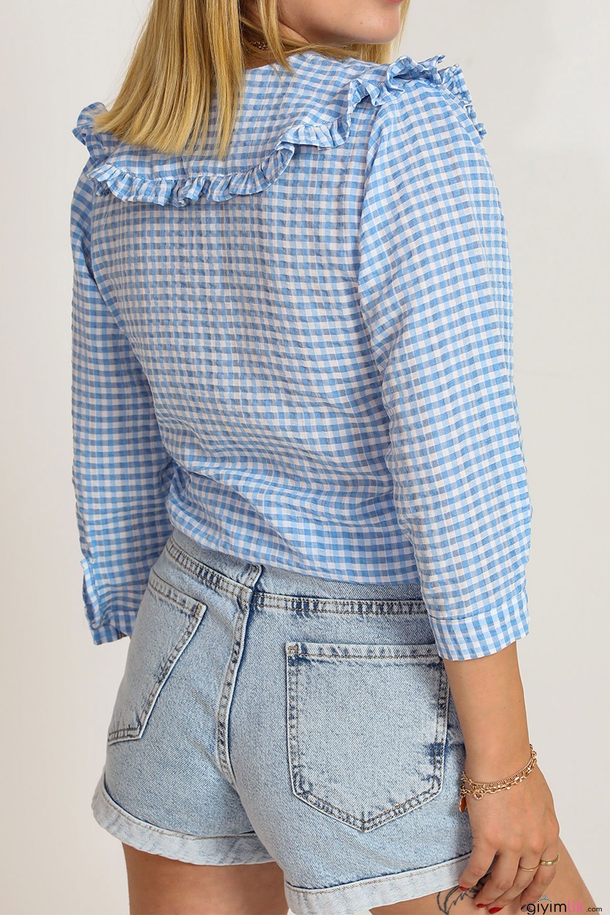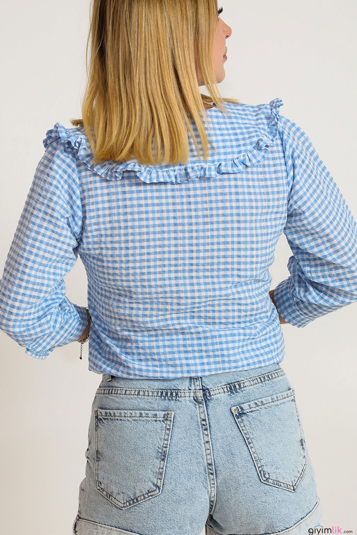 Pötikare Desenli Nostaljik Yaka Ekose Mavi Gömlek