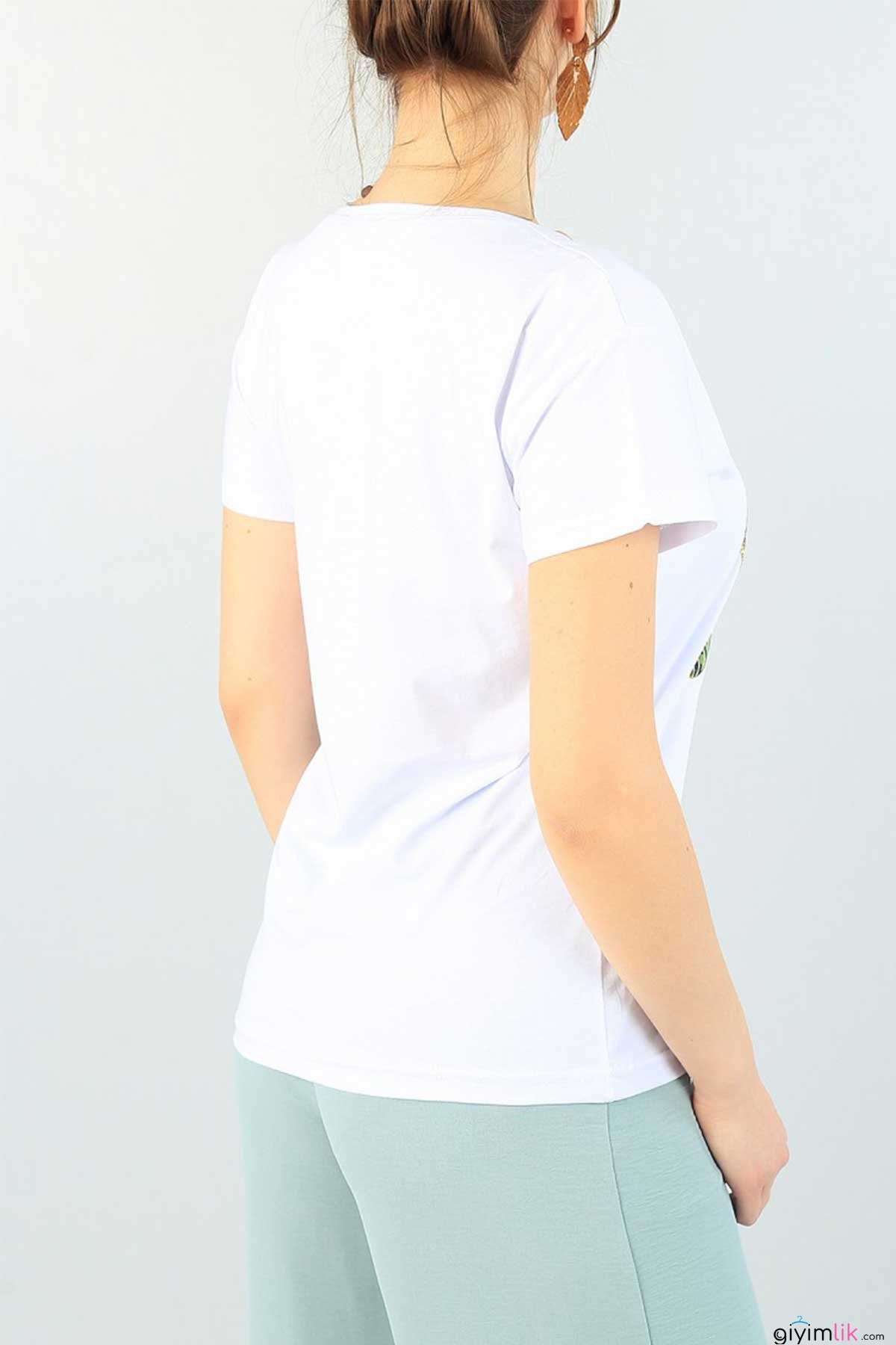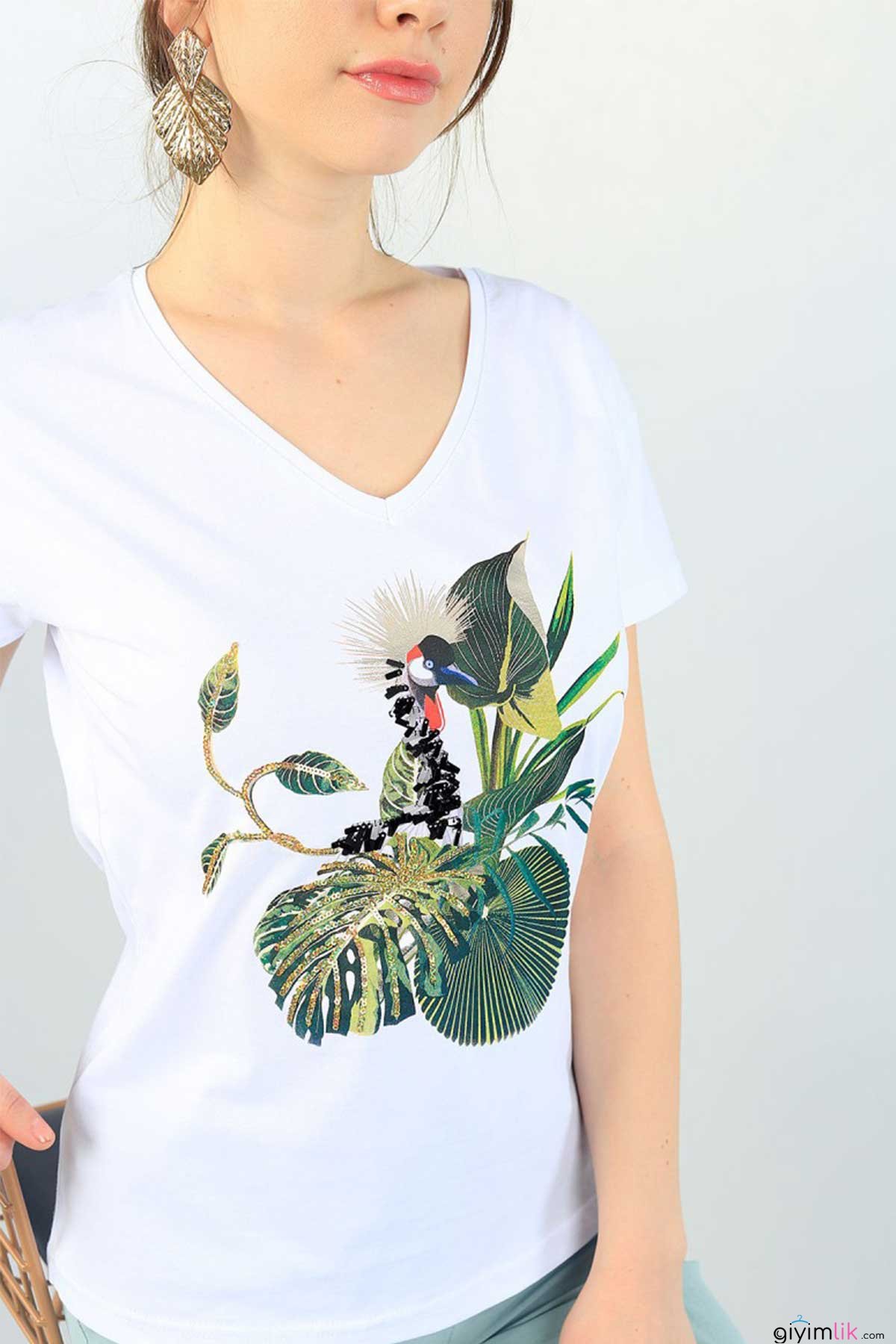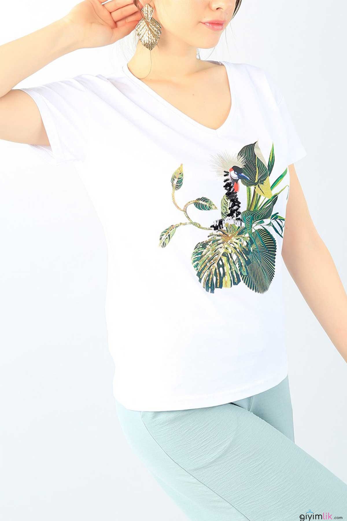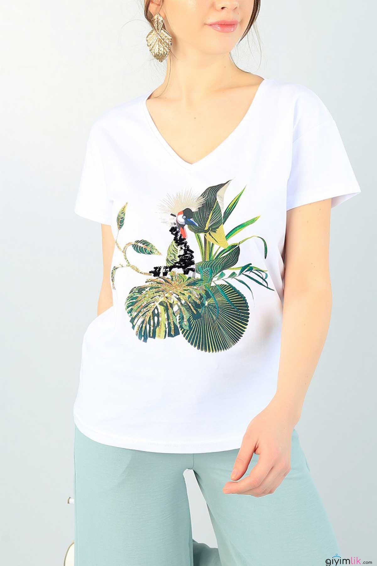 Hem jean hem de keten etek veya pantolonlarla rahatça kombinleyebileceğiniz tropikal desenli,pul işlemeli tişörtümüz S-M-L bedenleri ile stoklarımızda mevcuttur.