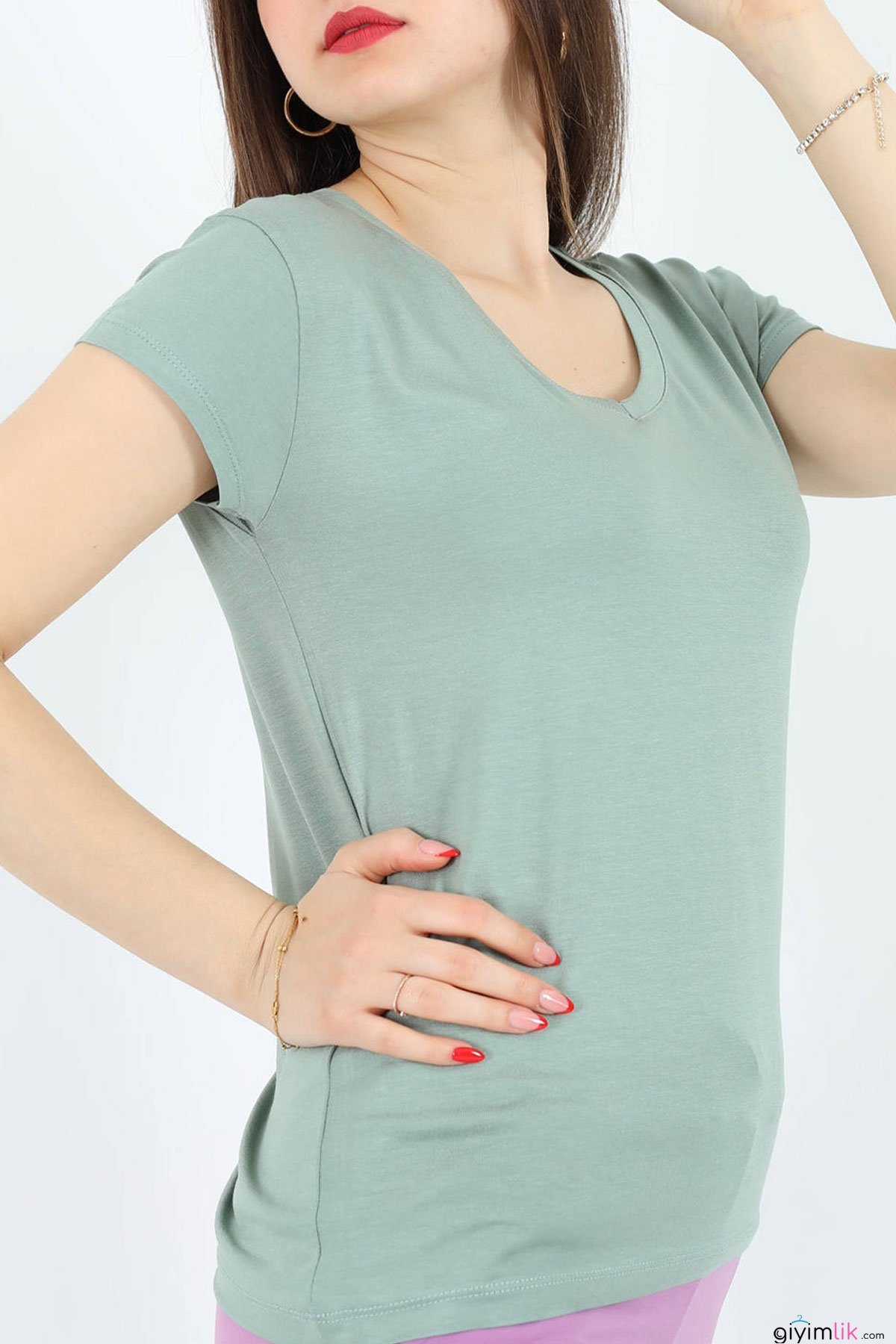 V Yaka Basic Tişört