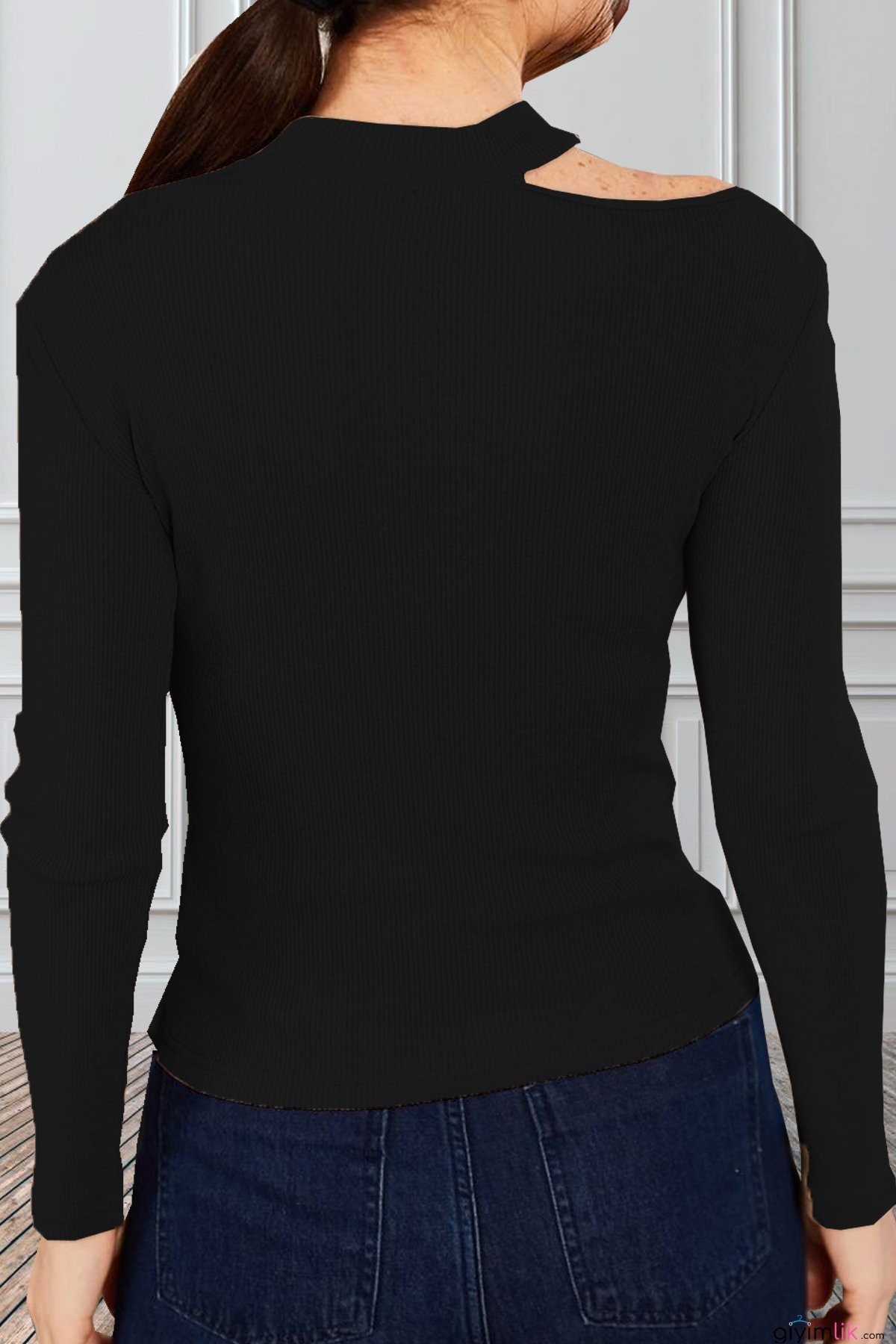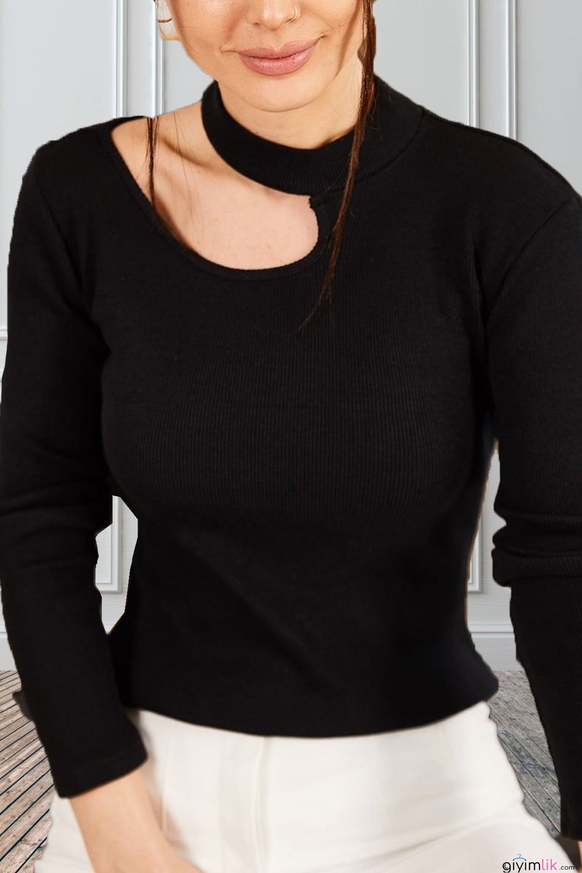 Yarım Balıkçı Omuzu Açık Siyah Bluz